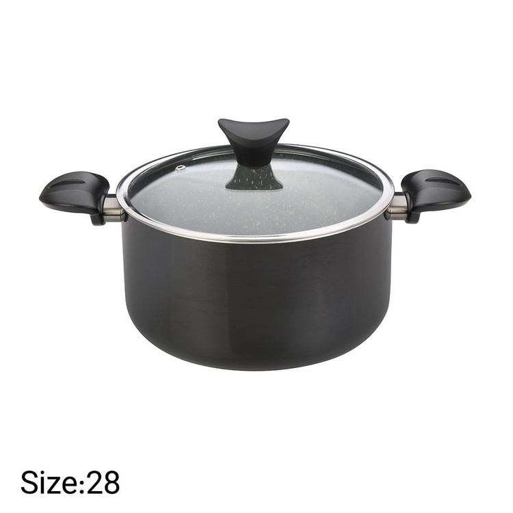 قابلمه کششی گرانیتی نیوهوم سایز 28 ” قابلمه از جنس آلیاژ آلومینیوم با روکش گرانیتی می باشد این محصول با قطر 28 سانتی متر مناسب برای پخت و پز برنج و خورشت تا 8 نفر میباشد، این محصول دارای کیفیت ساخت بالایی دارد و قابلیت قرار گیری داخل فر و ماشین ظرف شویی دارد، از جمله دیگر قابلیت های این محصول :